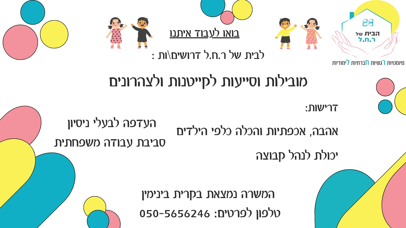 📩 שלחו קורות חיים / פנו אלינו לפרטים נוספים timcare4u@gmail.com